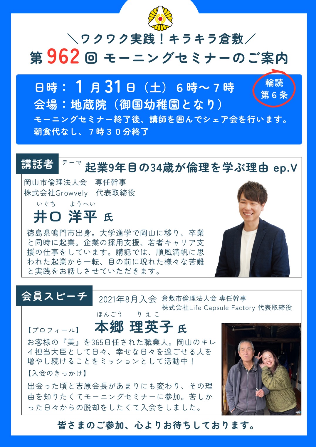 経営者モーニングセミナー 【2026年1月31日】経営者モーニングセミナー Post Share Hatena Line note 経営者モーニングセミナー コメント: 0 【2026年2月7日・2月14日】経営者モーニングセミナー 前の記事 【2026年2月6日】中野里 陽平氏 スペシャルナイトセミナー 次の記事