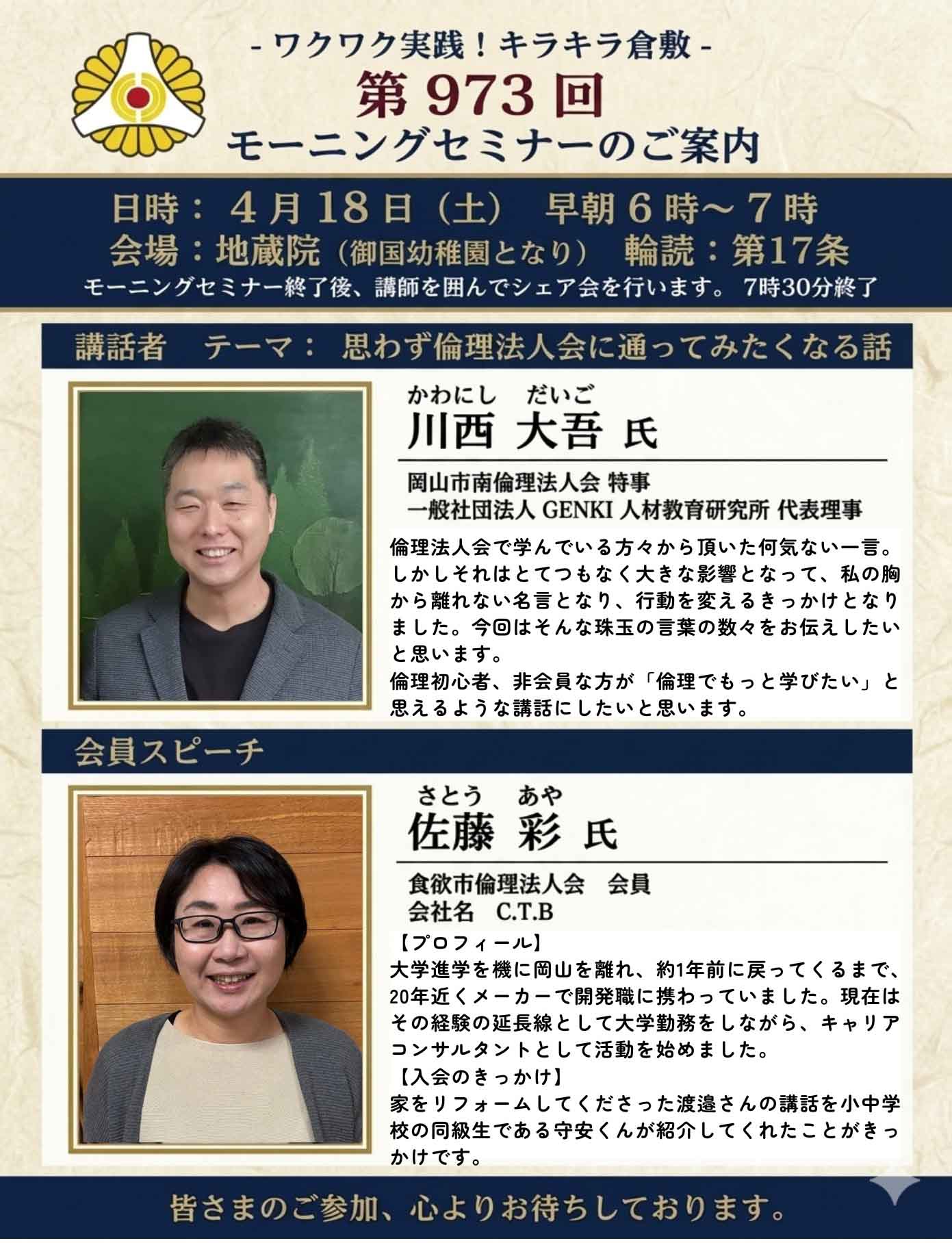 経営者モーニングセミナー 【2026年4月18日】第973回経営者モーニングセミナー Post Share Hatena Line note 経営者モーニングセミナー コメント: 0 【2026年4月11日】第972回経営者モーニングセミナー 前の記事
